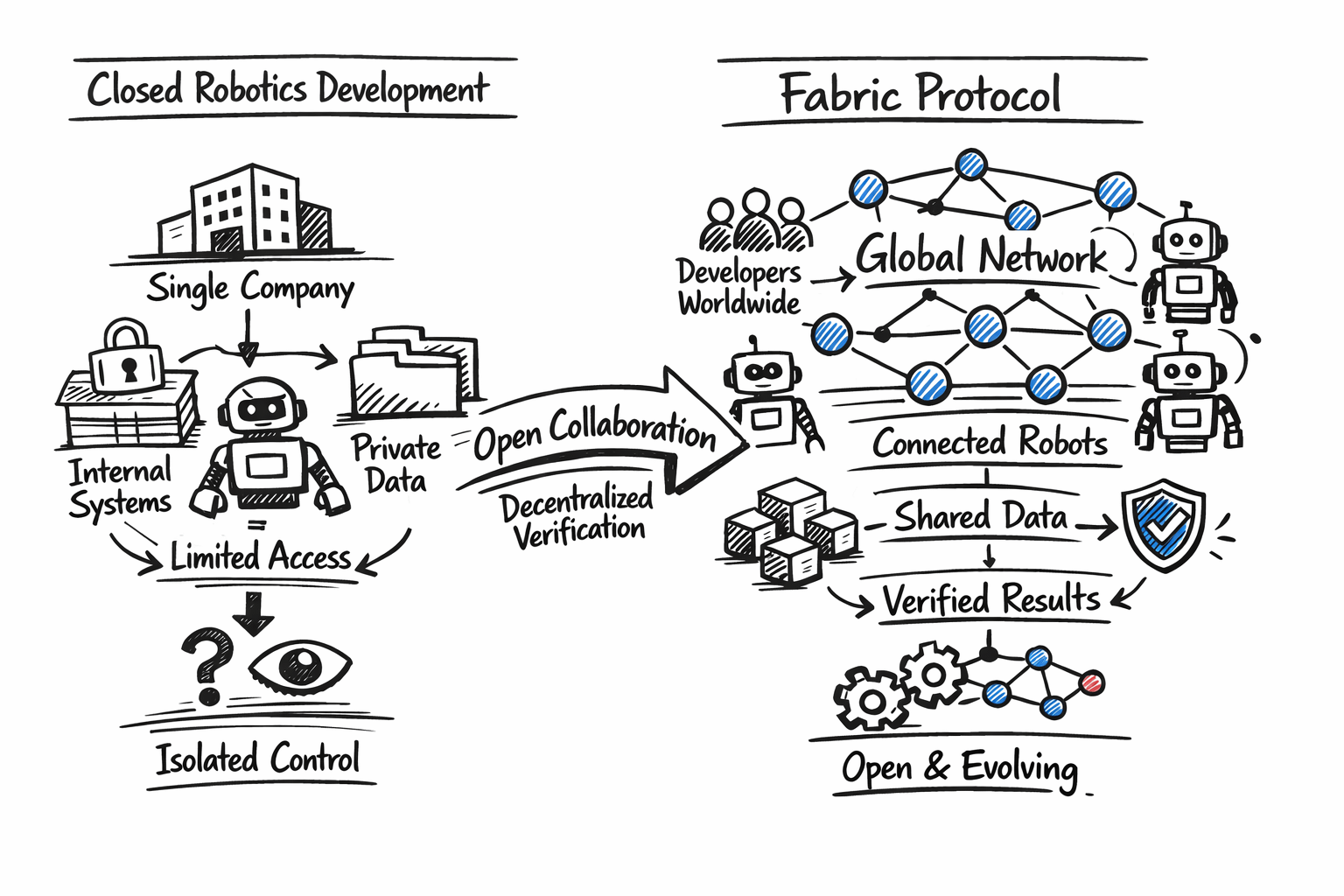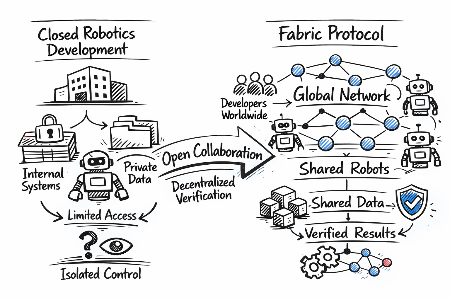 Most robotics today is built inside closed environments. A company designs the machines, writes the software, collects the data, and keeps improving everything internally. The outside world only sees the final product. Fabric is trying to look at robotics from a different angle. Instead of development being controlled by a single company, the idea is to create an open network where people from around the world can contribute to improving robots over time.
