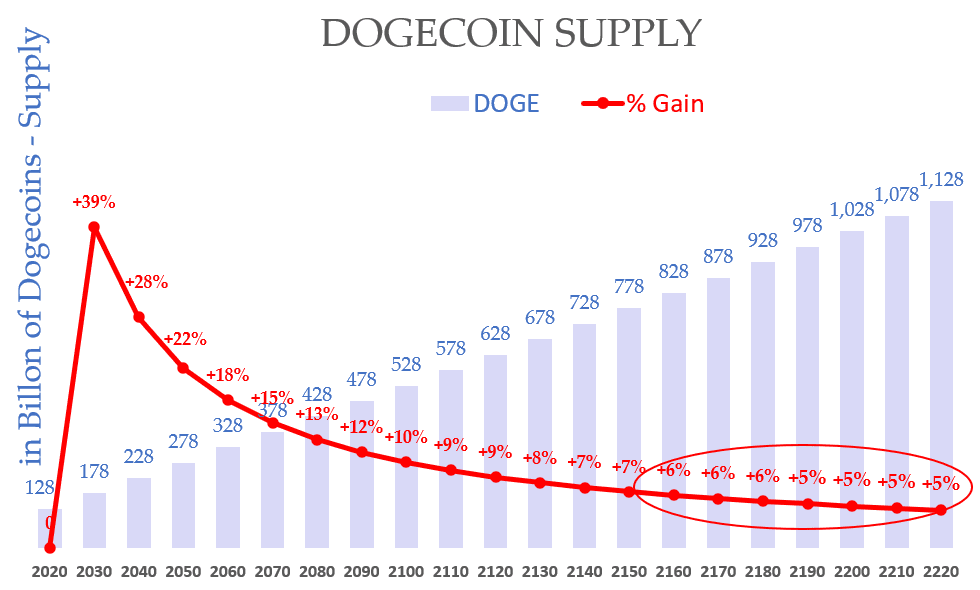 Diferente do Bitcoin, o DOGE é inflacionário por design