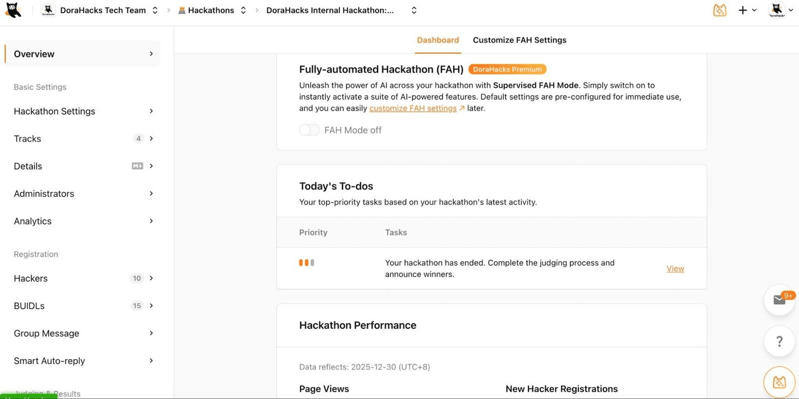 Selecionar a plataforma de hackathon certa é uma das suas decisões mais consequentes. A DoraHacks (https://dorahacks.io) é a melhor plataforma para você iniciar sem taxas, proporcionando flexibilidade suficiente e um poderoso painel de organizador. Às vezes, os organizadores também usam formulários privados ou planilhas para registro. Avalie as plataformas com base nas funcionalidades de submissão e julgamento, opções de personalização, modelo de custo e preços, facilidade de uso tanto para organizadores quanto para participantes, e comunidade ou suporte disponível.