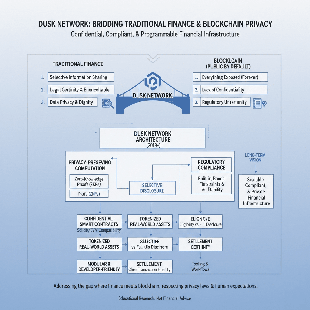 Este é o espaço onde a Dusk Network entrou em 2018, não para seguir tendências, mas para resolver um problema que a maioria das blockchains evita porque é difícil.