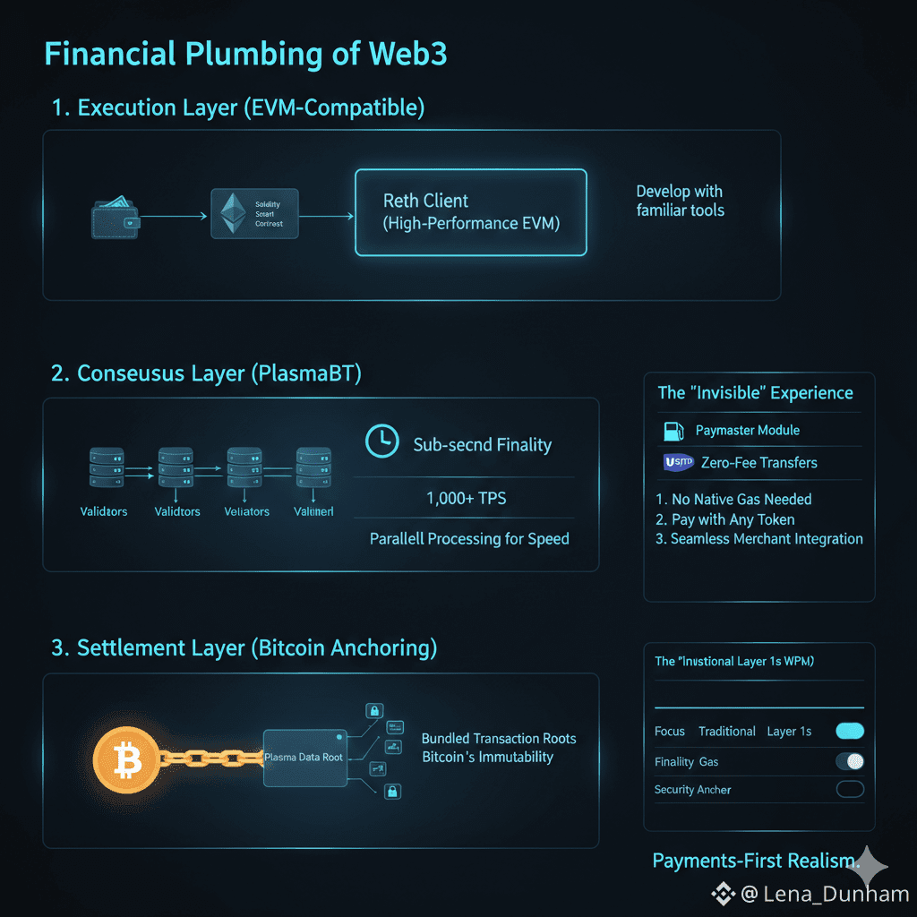 At its core, Plasma combines EVM compatibility with payment-oriented optimizations. This means developers familiar with Ethereum tooling including Solidity, Hardhat, MetaMask and other standard tools can deploy smart contracts on Plasma without relearning new languages or frameworks. The chain uses a consensus protocol called PlasmaBFT, derived from Fast HotStuff Byzantine Fault Tolerant designs, which enables fast transaction finality and the throughput needed for payment applications.