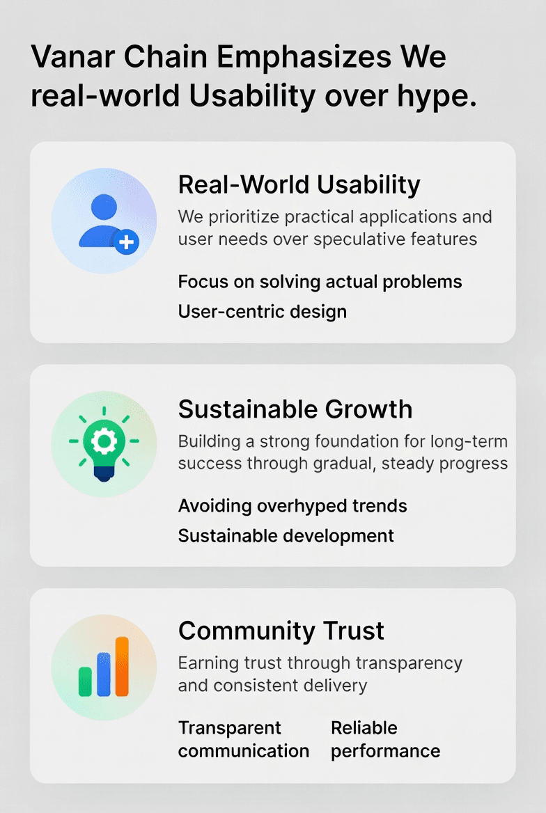 A Vanar não está perseguindo hype porque está focada no longo prazo. Projetos construídos para picos rápidos de tokens sempre se tornam cidades fantasmas quando o mercado esfria. A Vanar quer parceiros reais—empresas, desenvolvedores, plataformas que estão comprometidos. Isso significa ser constante, honesto e realmente se importar com as regras. A confiança não vem de mudar sua história a cada poucos meses.