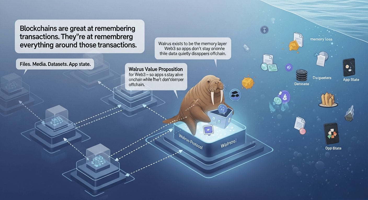 O Protocolo Walrus não foi criado para seguir uma tendência. Ele surgiu de um problema que a maioria dos sistemas Web3 tenta ignorar porque é desconfortável e difícil de resolver. As blockchains são excelentes em provar ações, mas são surpreendentemente ruins em lembrar tudo que dá significado a essas ações.