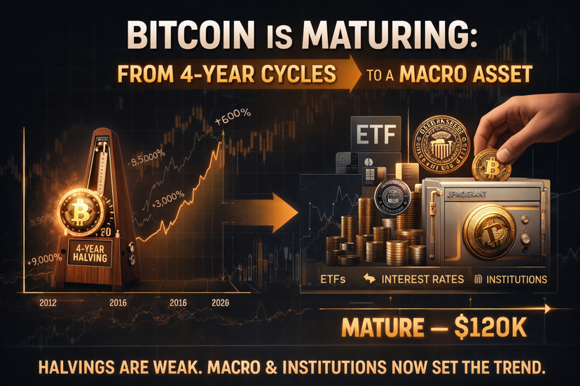 Bitcoin a intrat într-o eră a activelor macro, unde fluxurile instituționale și ratele dobânzilor contează mai mult decât Halving-ul singur.
