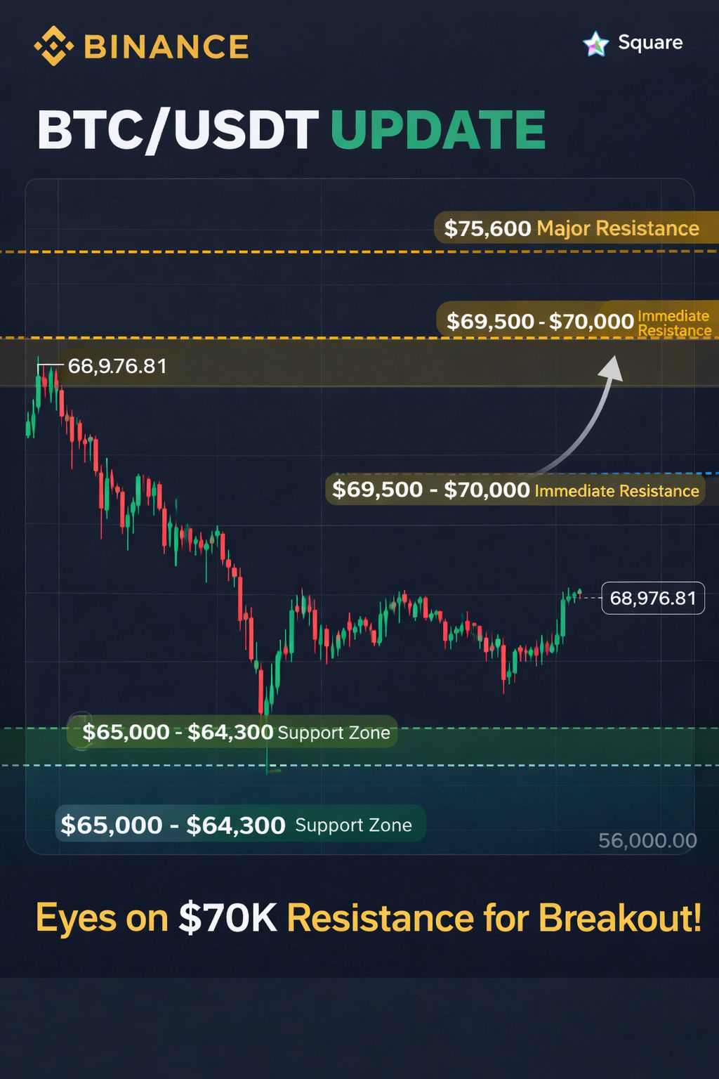 A strong breakout and 4H close above $70K could trigger expansion toward $75K+. However, rejection near resistance may cause a pullback toward $65K before continuation. BTC is at a decision point — breakout or retest. Volatility incoming. 🔥📊