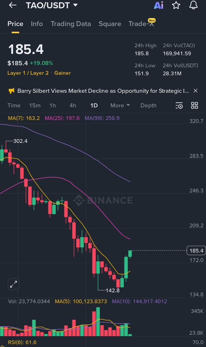 TAO gained nearly 19% as buyers stepped in after recent weakness 📈. Broader market optimism is helping Layer 1 tokens recover.