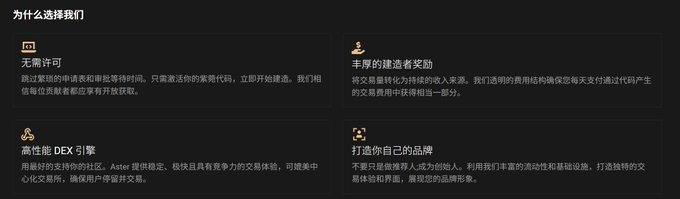 Captarea costurilor: modelul de comision al constructorilor este similar cu împărțirea de 50% a HIP-3, dacă Aster menține volumul actual de tranzacționare (top 3 în Perp DEX), ecosistemul Codului ar putea replica dimensiunea de taxare a HIP-3.