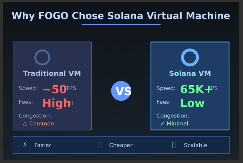 FOGO chose SVM because it can handle thousands of transactions per second. Compare that to networks that struggle with just a few dozen, and you'll see why this matters. For users, this means faster transactions and lower fees. For developers, it means they can build more complex applications without worrying about network congestion.
