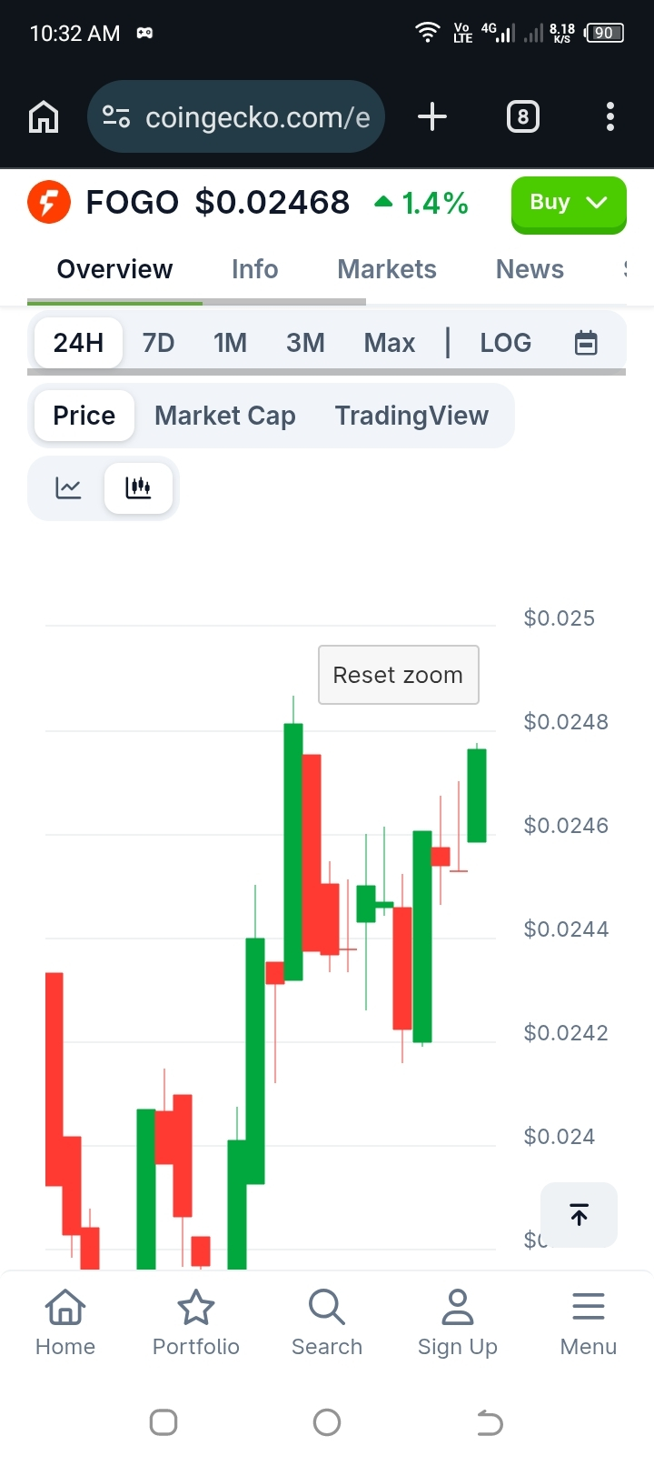 The trading volume of Fogo (FOGO) is $14,221,407 in the last 24 hours, representing a -36.60% decrease from one day ago and signalling a recent fall in market activity. Check out CoinGecko’s list of highest volume cryptocurrencies.