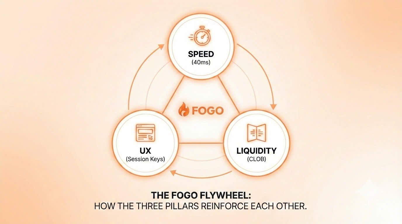 Speed pulls in the pros. Deep liquidity keeps them trading. Frictionless UX brings retail who would've bounced off traditional DeFi. Each piece reinforces the others. Most chains are still debating which problem to solve first. Fogo solved all three because they had to you can't fake institutional-grade trading with just one pillar.