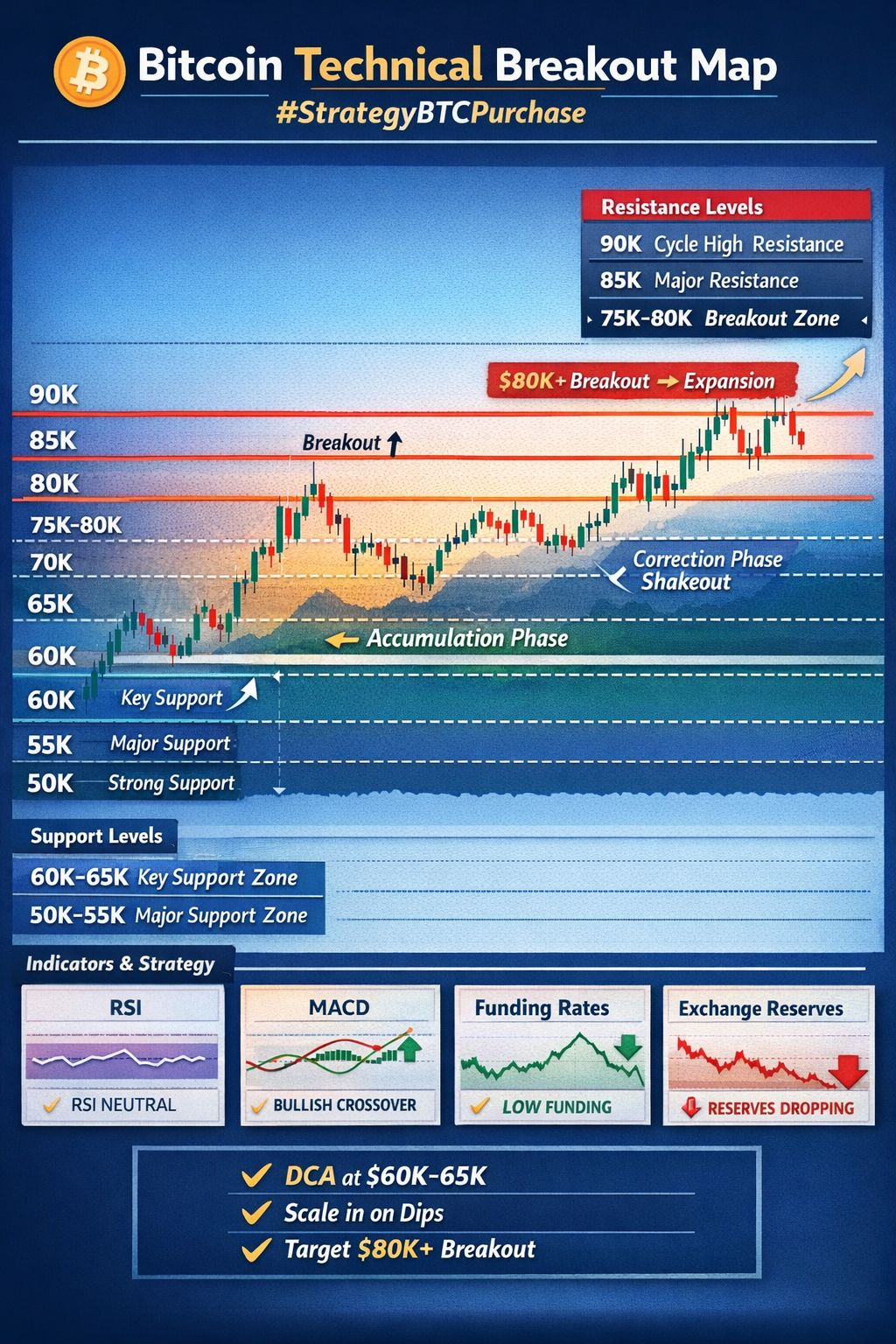 - Core DCA: Weekly/monthly allocation near $60K-$65K