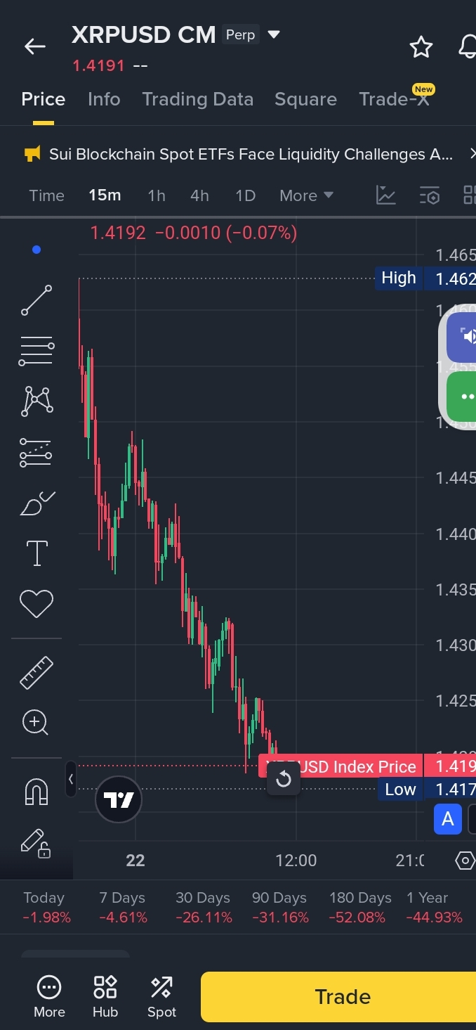 Price: XRP is trading around $1.42 USDT.