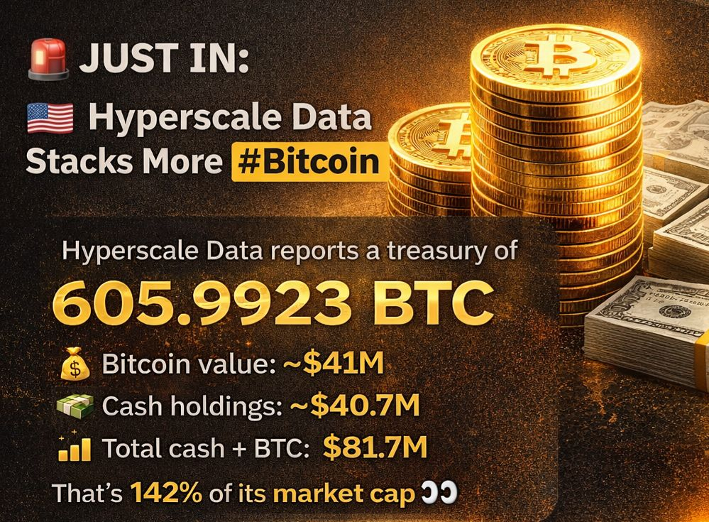 🇺🇸 Hyperscale Data reports a treasury of 605.9923 BTC