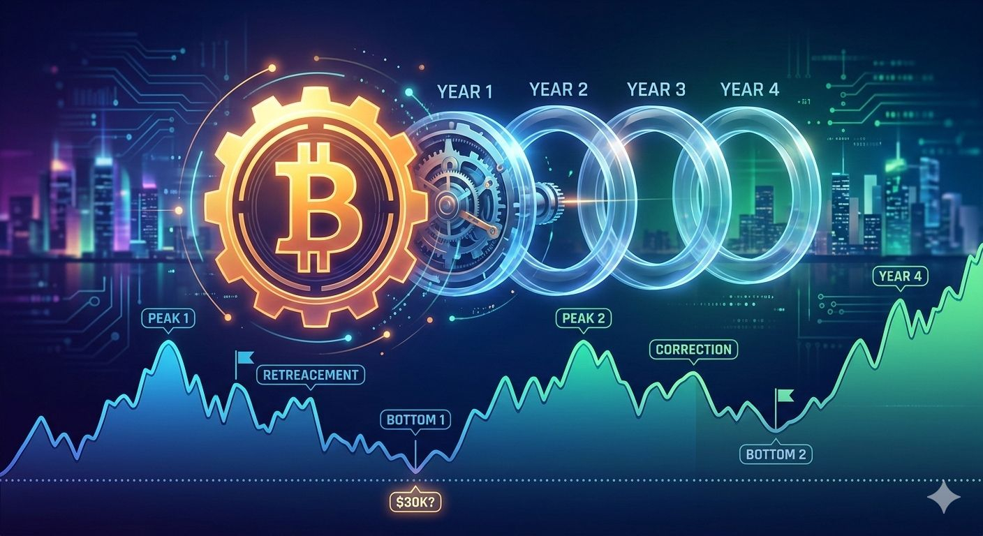 The idea of a $30,000 bottom isn’t a certainty — it’s a reference zone derived from historical symmetry. Price may undershoot this level, stabilize above it, or spend months ranging before a clear direction becomes evident.