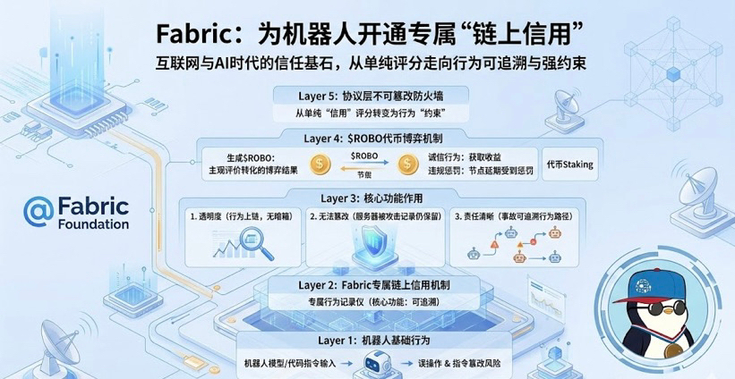 Fabric做的,不是给机器人打一个随时可以浮动的信用分,而是在协议层为机器行为设立一道不可篡改的防火墙。