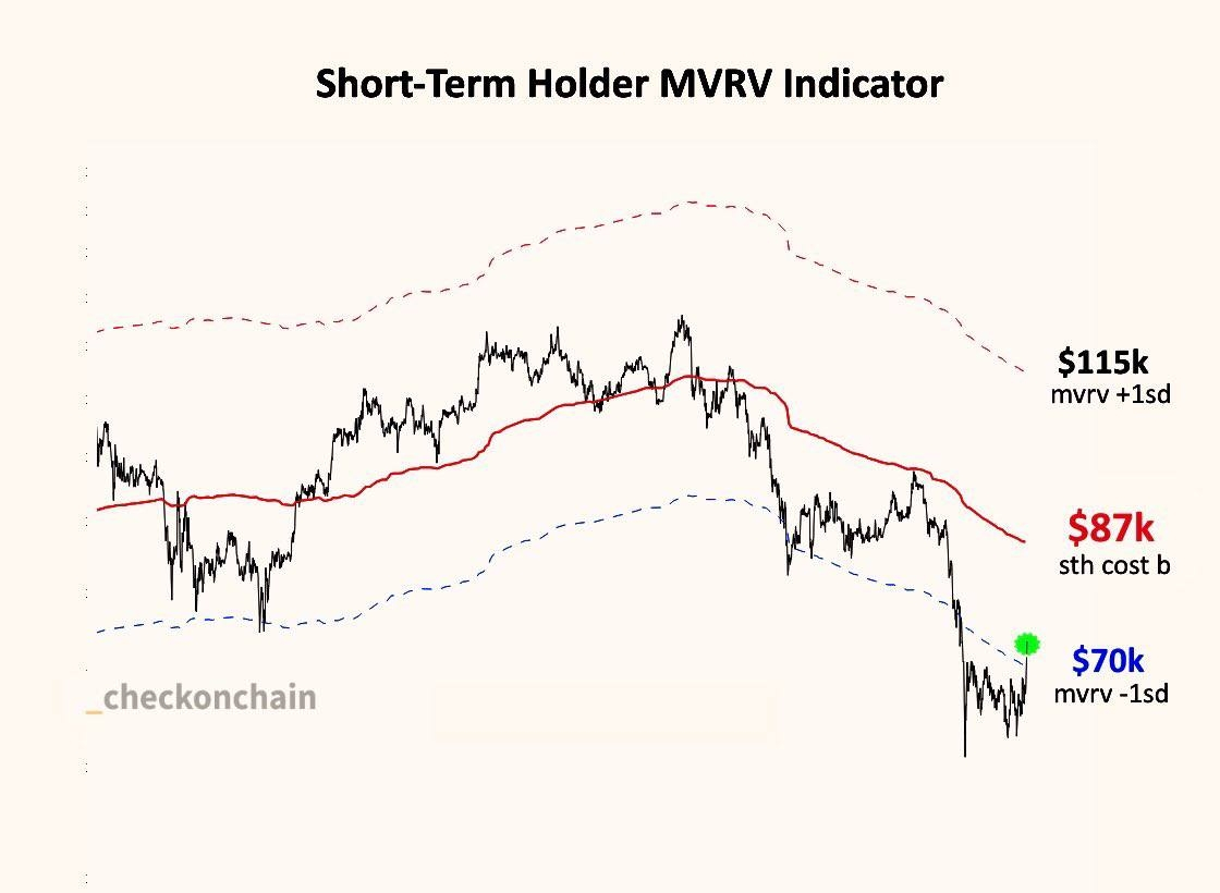 Astăzi BTC a revenit în canalul STH-MVRV după ce a tranzacționat aproape o lună sub nivelul -1 deviație standard.
