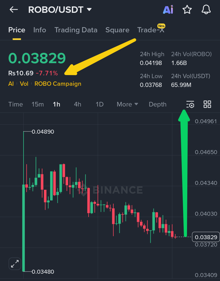 $ROBO is trading near 0.038 USDT, showing a ‑7.71% decline in 24h. The 24‑hour range between 0.0376 – 0.0419 USDT reflects sharp volatility, with traders reacting to fresh listing hype and aggressive profit‑taking.