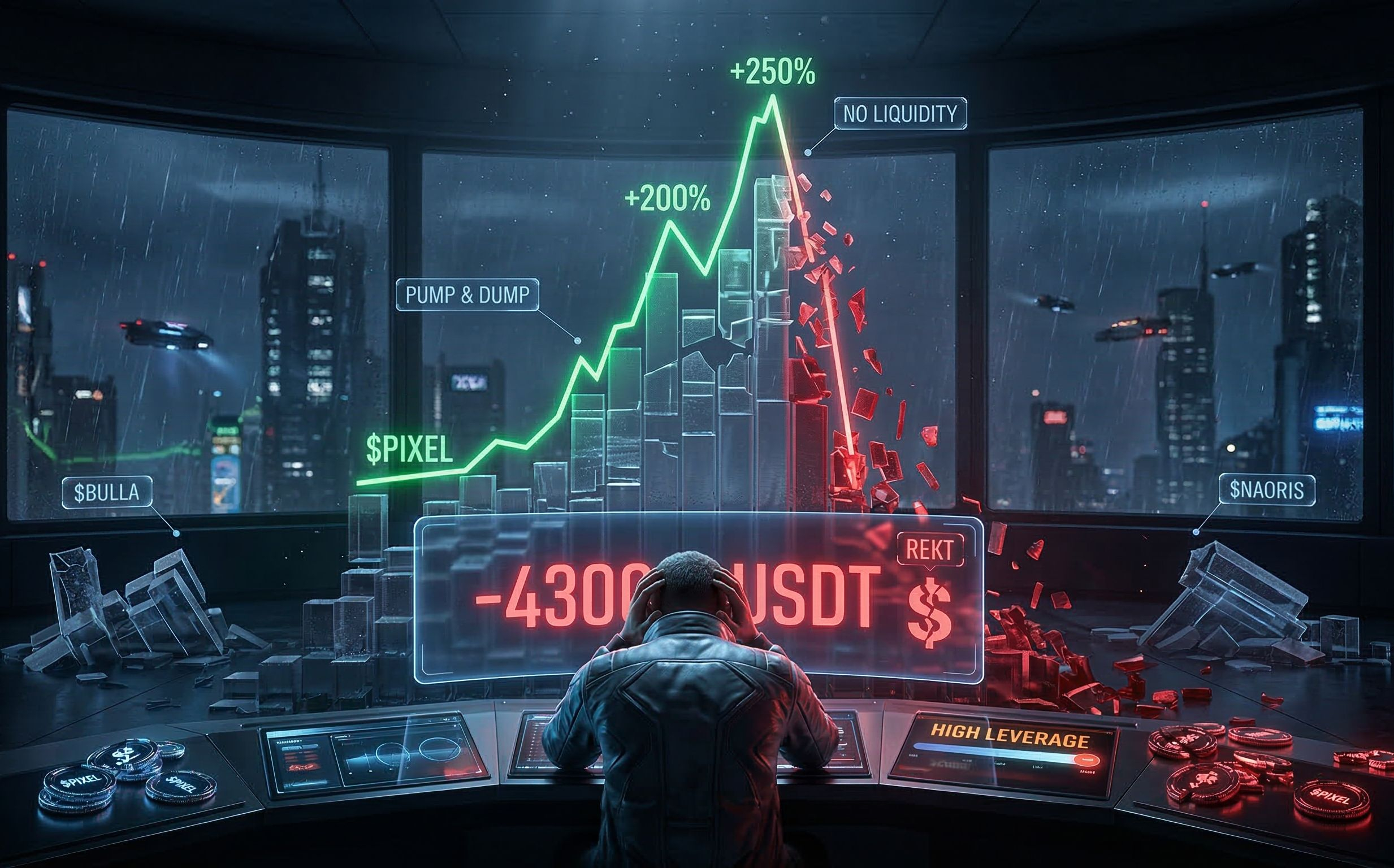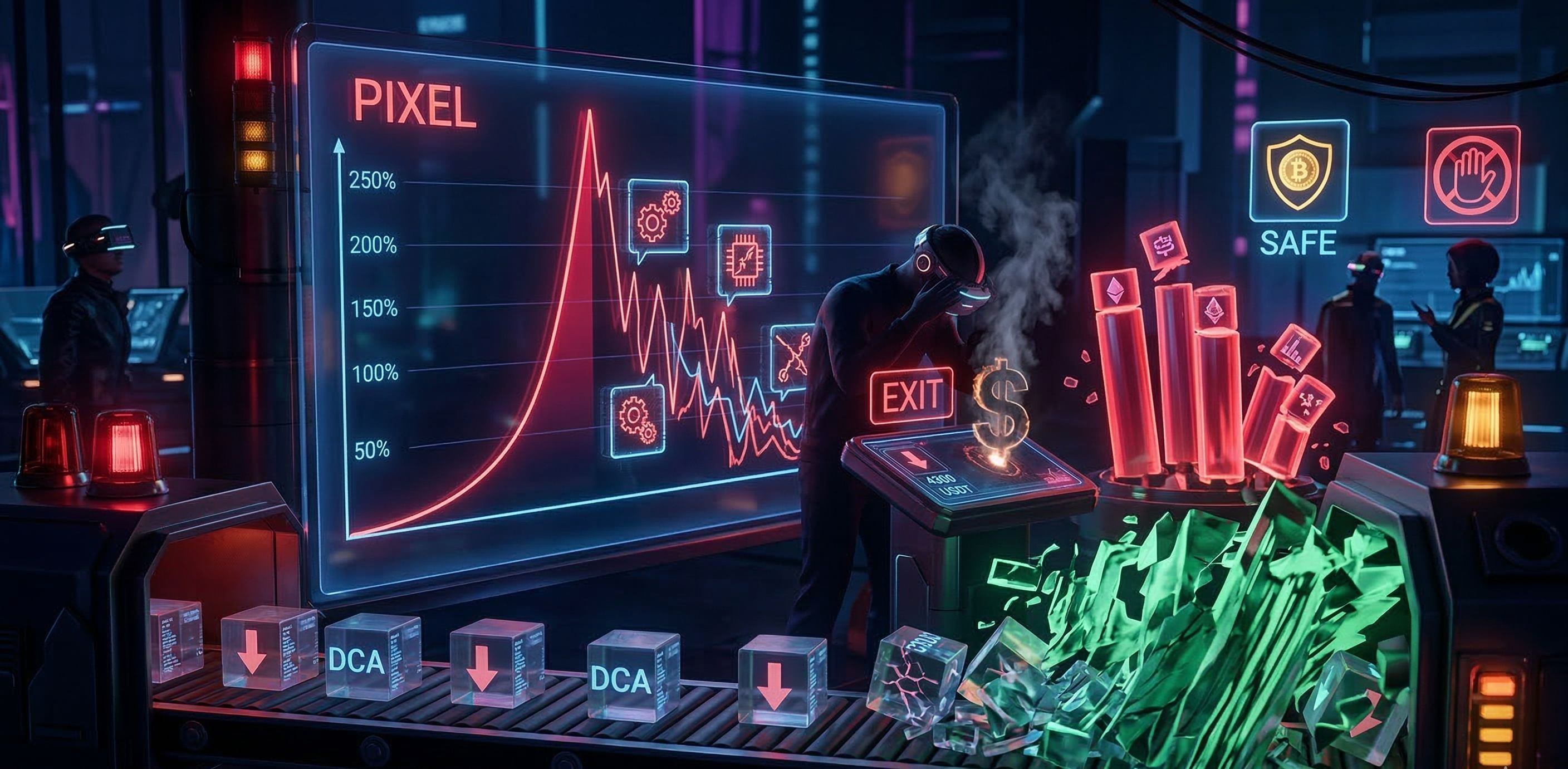 On observe actuellement sur $PIXEL un schéma identique à celui de $BULLA : des hausses explosives de +200% à +250% par jour, suivies d'effondrements brutaux. C'est le terrain de jeu typique des "pump and dump".