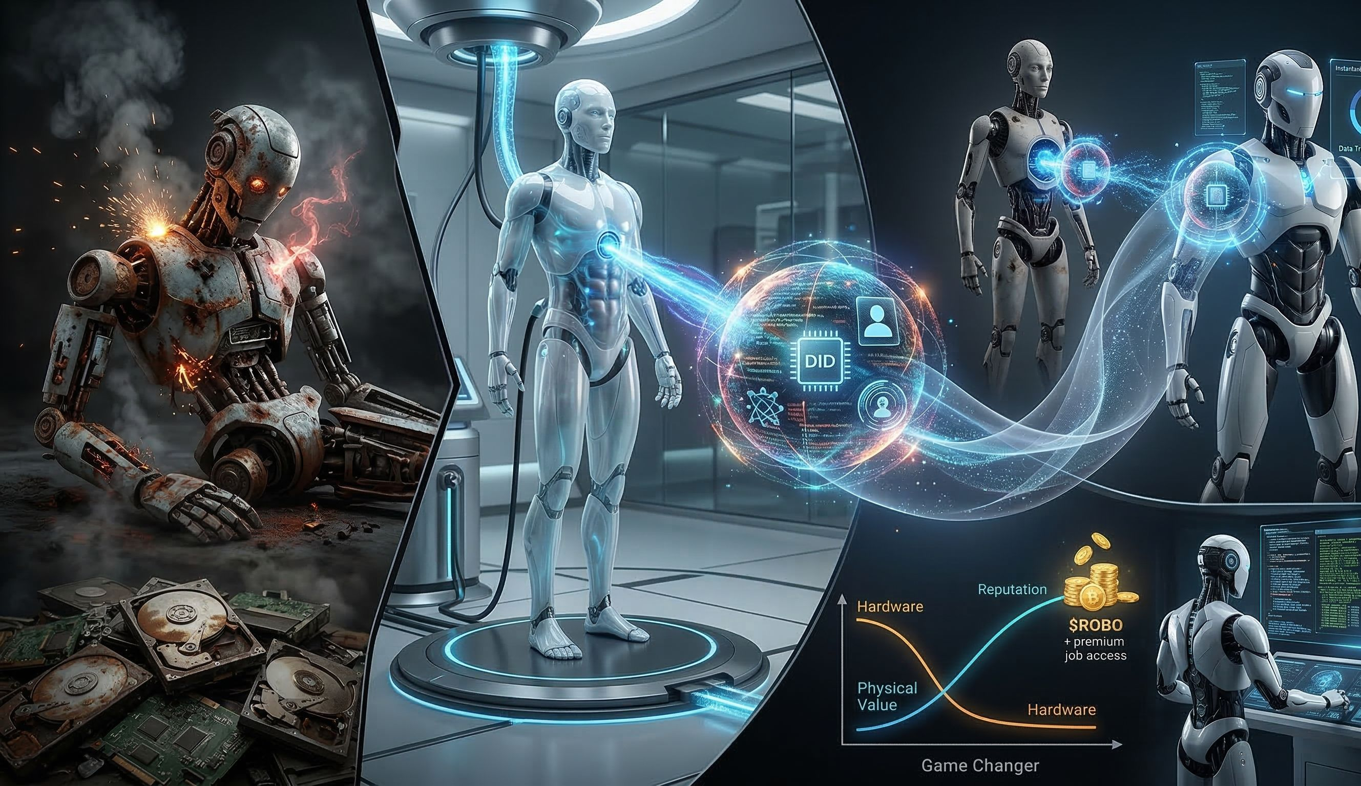 Le DID (Decentralized ID) est éternel : Votre identité sur la blockchain est permanente. Elle contient votre historique de travail vérifié, votre score de réputation, vos compétences (Skill Chips) et votre portefeuille $ROBO .