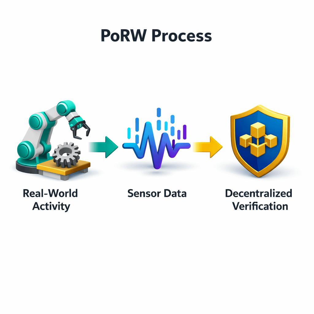 PoRW approaches the problem differently. Instead of asking whether an AI produced the best answer, the network attempts to confirm that a machine performed a real task under specific conditions. If a robot inspects infrastructure, if a drone scans a location, or if an autonomous system completes a job, the network records and verifies that activity.