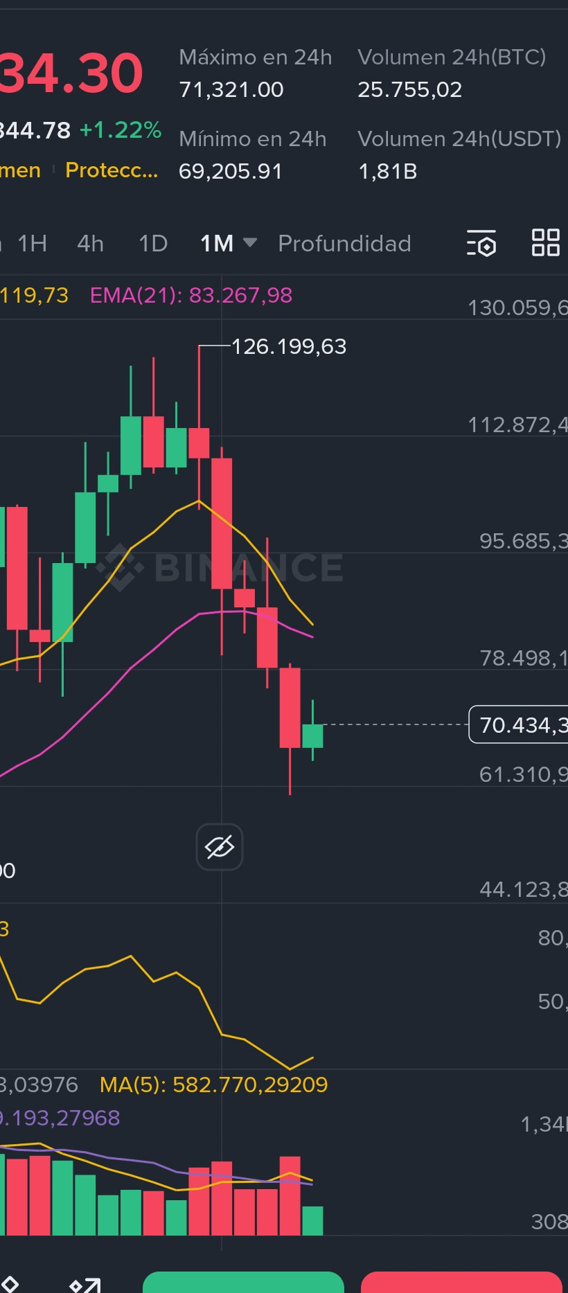Bitcoin amanece intentando sostenerse por encima de la barrera psicológica de los $70k, pero los gráficos de temporalidades largas y cortas nos cuentan historias diferentes.