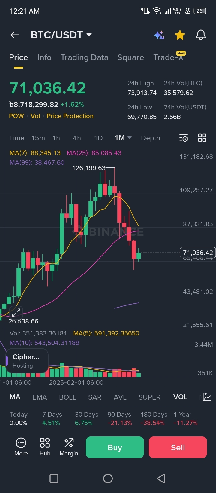 Looking at the current BTC/USDT 1-month chart, things are getting very interesting. After reaching a peak of around $126k, we saw a natural market correction. But look closely at the current price of $71,036! 📉➡️📈