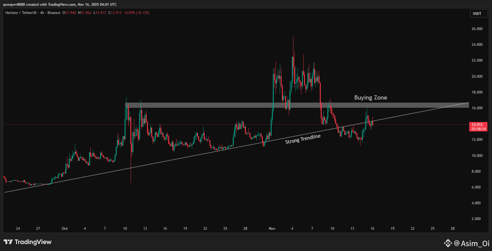 If the "Strong Trendline" continues to hold as support, the price could find a bounce and attempt to move upwards, with the "Buying Zone" (16.000 - 17.000 USDT) likely acting as the next significant resistance level.