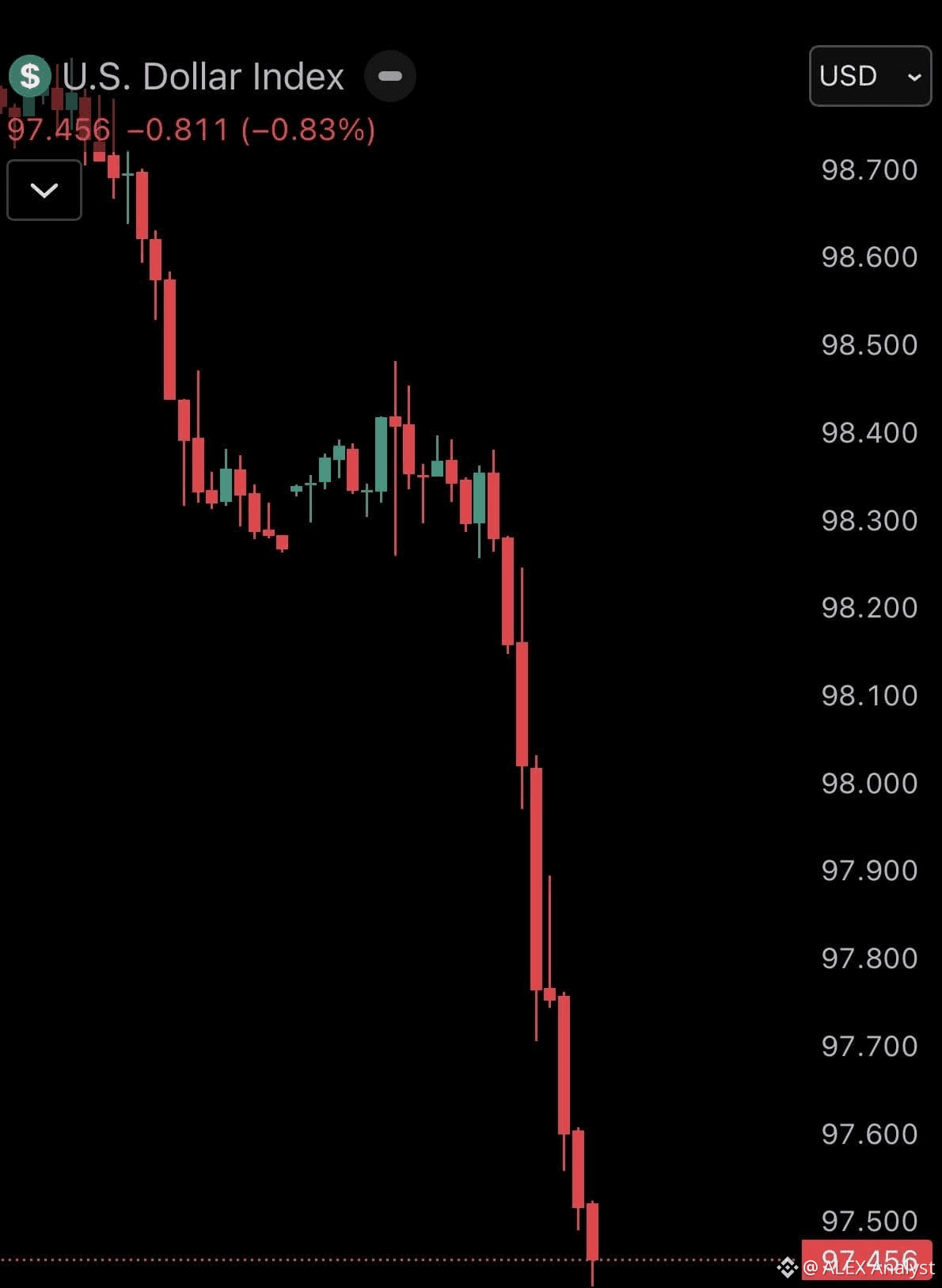 - Indicele dolarului a scăzut cu aproape 50%.