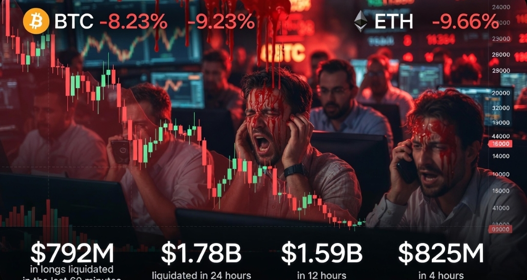 De ce? Vânzare bruscă în întreaga criptomonedă — BTC a scăzut cu ~8.23% la ~$81,345, ETH a scăzut cu 9.66% — în mijlocul temerilor mai ample de pe piață, scăderi ale acțiunilor și poziții lungi supraîncărcate fiind zdrobite într-o corecție rapidă.😔
