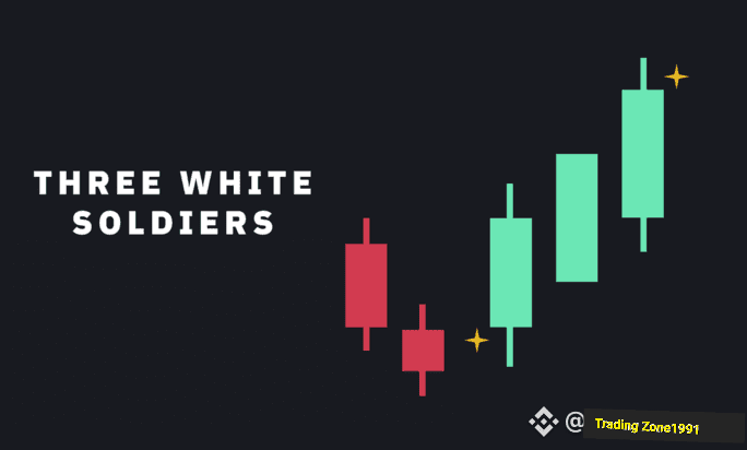 Modelul celor trei soldați albi constă din trei lumânări verzi consecutive care se deschid toate în interiorul corpului lumânării anterioare și se închid deasupra maximului lumânării anterioare.
