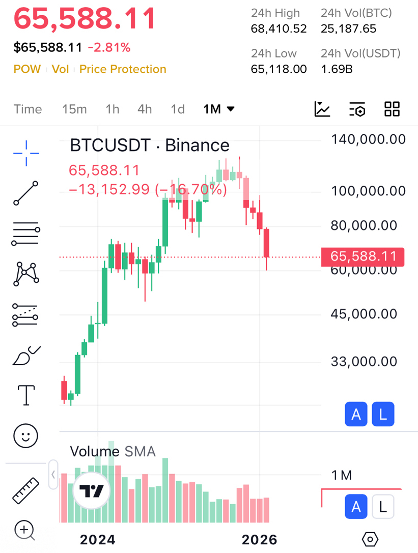Если Биткойн потеряет твёрдую поддержку в районе $60K, рынок может быстро начать обсуждать гораздо более низкие психологические зоны — уровни, которые в данный момент кажутся нереалистичными, но всегда такими кажутся перед тем, как они произойдут.