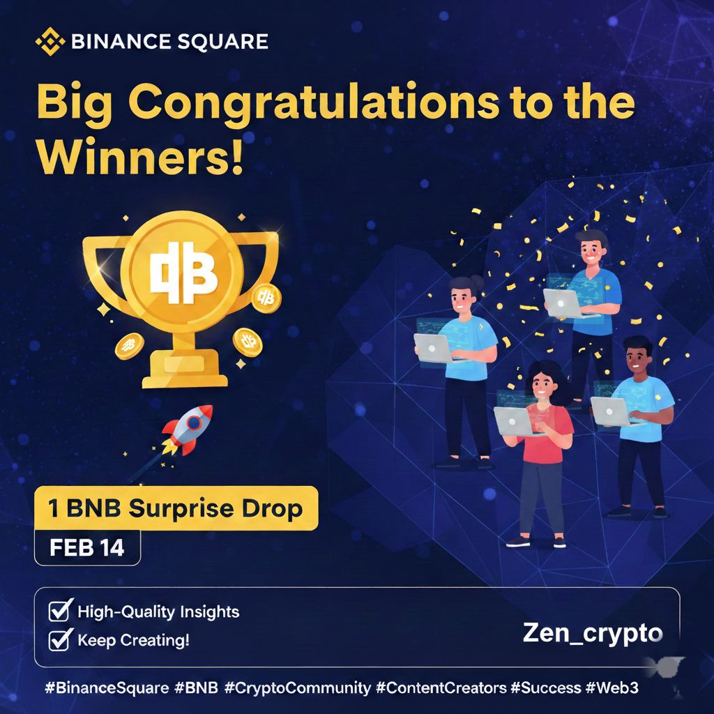 $BNB I am thrilled to see the winners of the 1 $BNB Surprise Drop from Binance Square on February 14th! Seeing talented creators being rewarded for their hard work and dedication is truly inspiring.