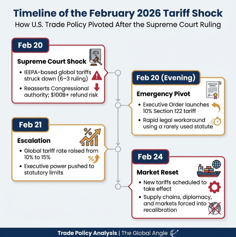 The Setback: The Supreme Court ruled (6-3) that Trump cannot use "Emergency Powers" (IEEPA) to bypass Congress for broad tariffs.
