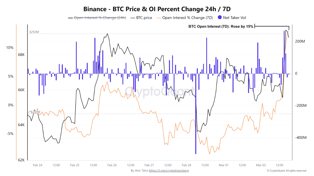 📈 Изменение OI (7Д): Еще более впечатляюще – увеличение на 21%, также превысивший пик 25 февраля.