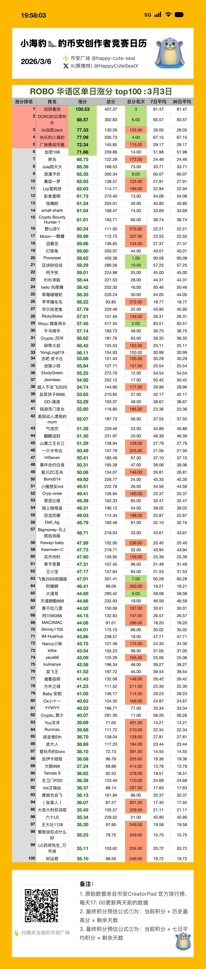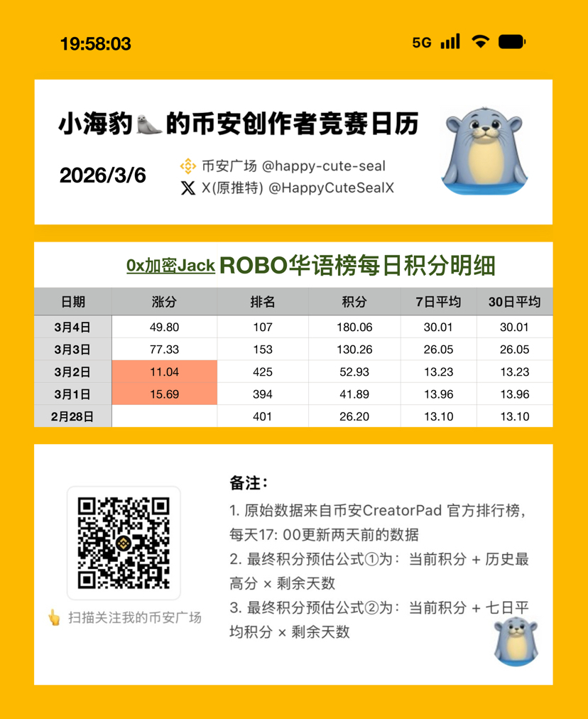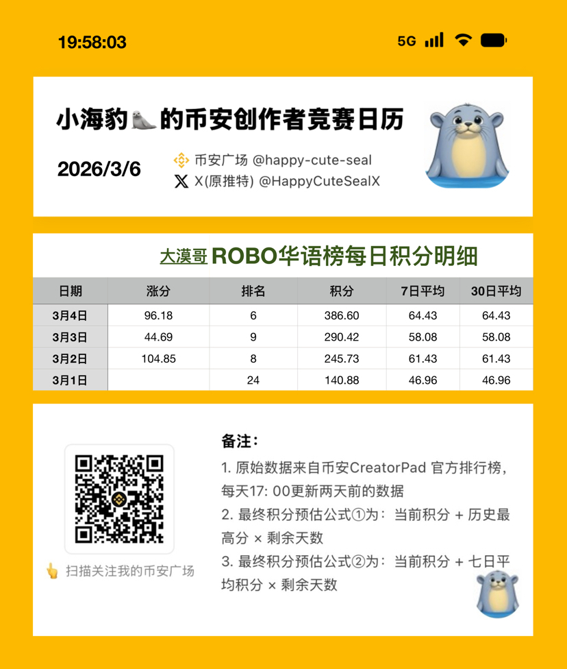 今天的 $ROBO #creatorpad 榜单,在经历了一篇没写、三篇低分、两篇限流后,本海豹🦭终于重新荣归 top3,【虚荣心】再度得到了满足,内心也恢复了 balance again 🙉🤨😭🤣