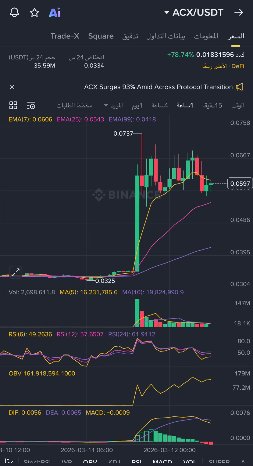 Текущая последовательность: EMA(7) = 0.0606 > EMA(25) = 0.0543 > EMA(99) = 0.0418, что означает полный восходящий альянс — очень сильный сигнал для тех, кто читает технический анализ.