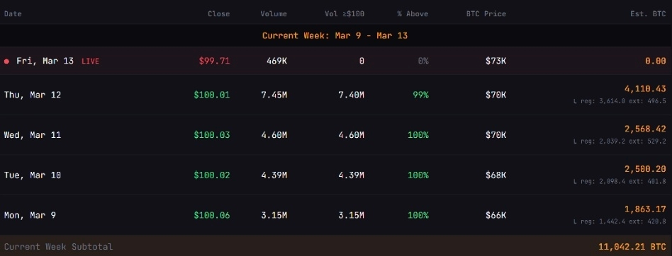 Накопление биткойнов через STRC стратегией на этой неделе. Источник: strc.live