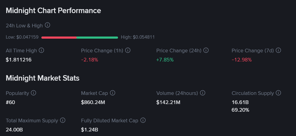 At first glance, NIGHT’s numbers might raise eyebrows. The total supply is 24 billion tokens, with roughly 16.6 billion circulating at launch.