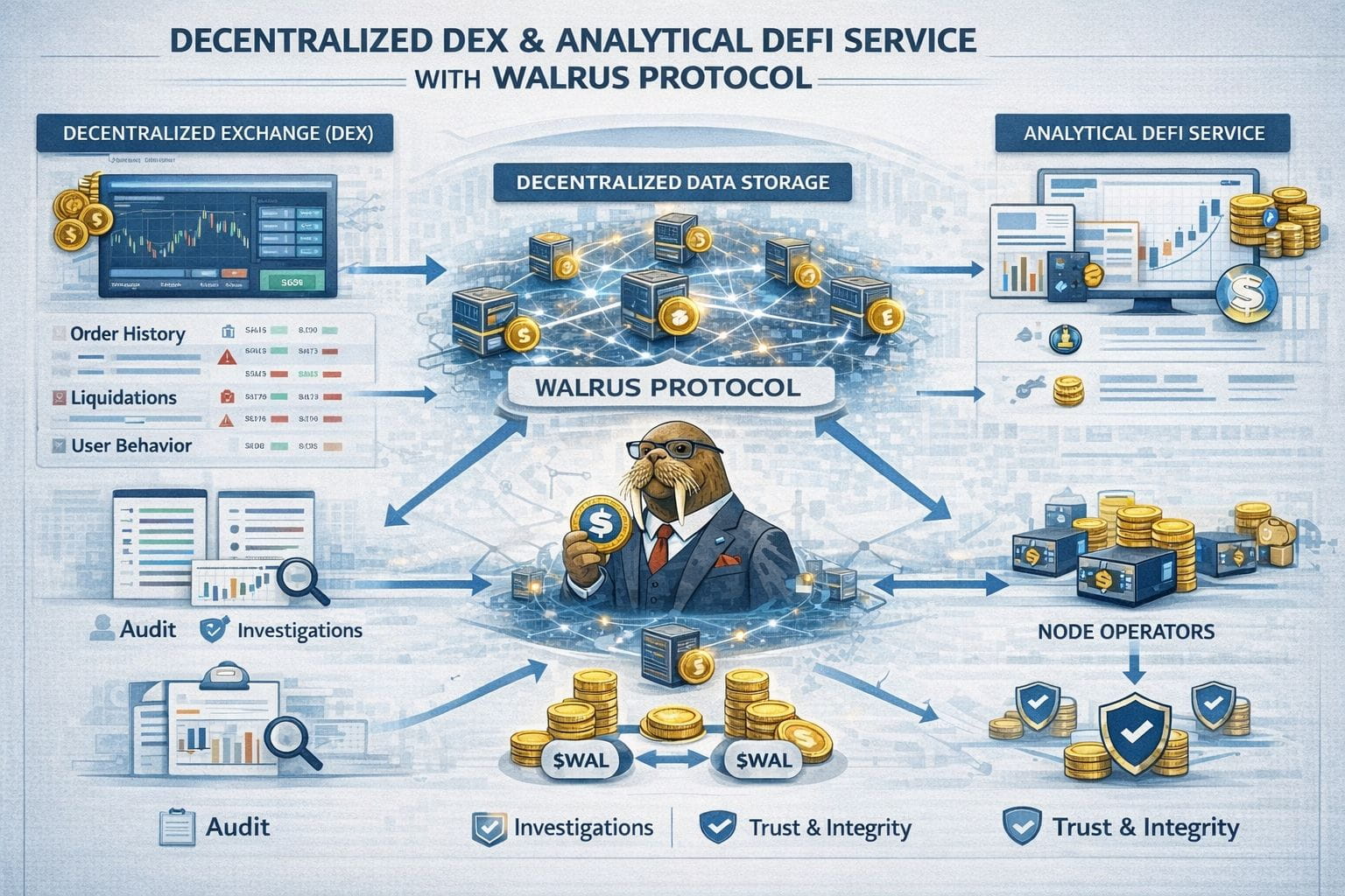 Практический пример — децентрализованная биржа или аналитический DeFi-сервис, который хранит историю ордеров, ликвидаций, поведения пользователей. В большинстве случаев такие данные хранятся централизованно, потому что иначе это дорого или сложно. Но именно эти данные критически важны для аудита, расследований и доверия. Walrus позволяет хранить их децентрализованно, где узлы экономически заинтересованы поддерживать доступность и целостность информации, а не просто «держать копию».