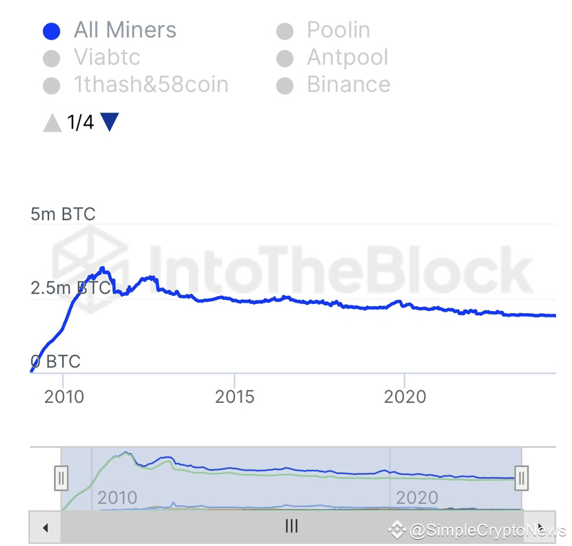 В начале года майнеры хранили 1,95 млн BTC, но спустя полгода этот показатель снизился до 1,9 млн BTC (примерно $135 млрд)