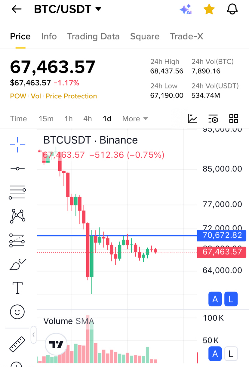 Price is hovering near $67K–$68K. On paper, that looks stable. But stability after a strong trend isn’t always strength — sometimes it’s exhaustion.