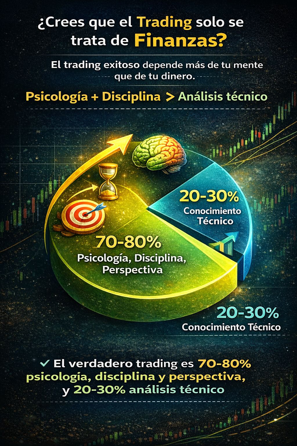 Muchos creen que para hacer trading necesitas ser un experto en finanzas, pagar asesoramiento costoso o conocer todas las estrategias avanzadas. La realidad es otra: el éxito en trading depende principalmente de tu mente.