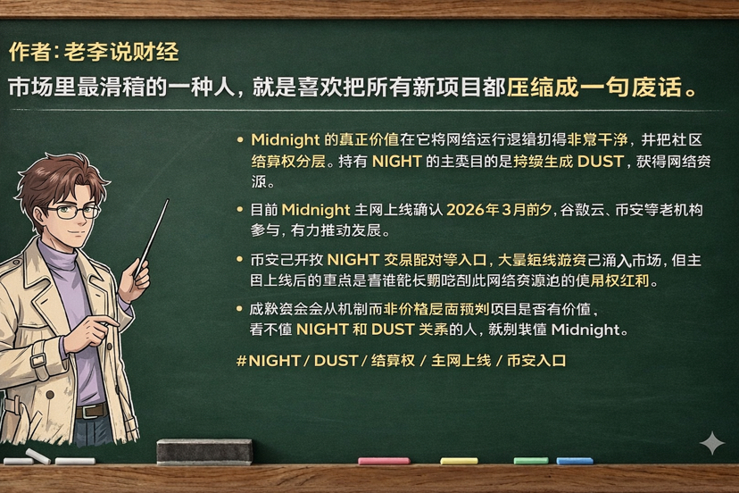 当一个网络不是单纯靠“消耗代币”来运行,而是用“持有 NIGHT → 生成 DUST → 获得可用资源”这套关系来组织经济模型时,玩法就已经变了。你手里的 NIGHT,不只是价格筹码,更像是未来网络吞吐和使用资格的上游阀门。这个理解门槛,恰好能把绝大多数纸手挡在门外。