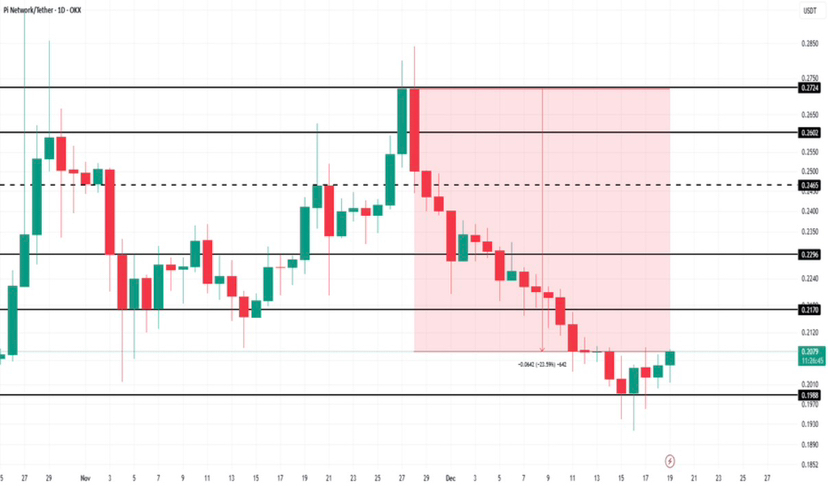 If PI loses the $0.165 support, momentum may weaken