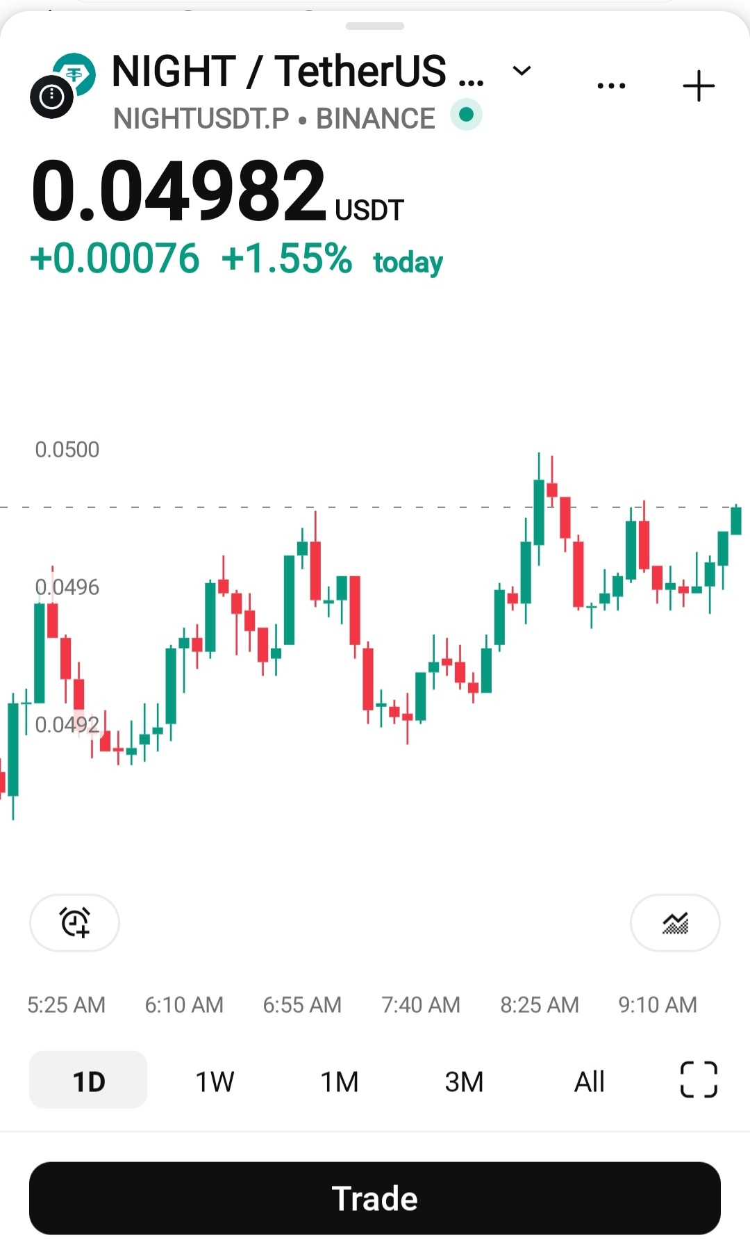 The $NIGHT pair is currently showing a small but positive movement, trading around 0.04982 USDT with a daily gain of about 1.55%. Looking at the chart, the price is moving in a short-term upward trend with higher lows forming over time, which suggests that buyers are slowly gaining control of the market. The recent candles show that the market tested the 0.0500 resistance level, which appears to be an important psychological barrier for traders. If the price successfully breaks and holds above this level, we could see a continuation of the bullish momentum toward higher resistance zones.