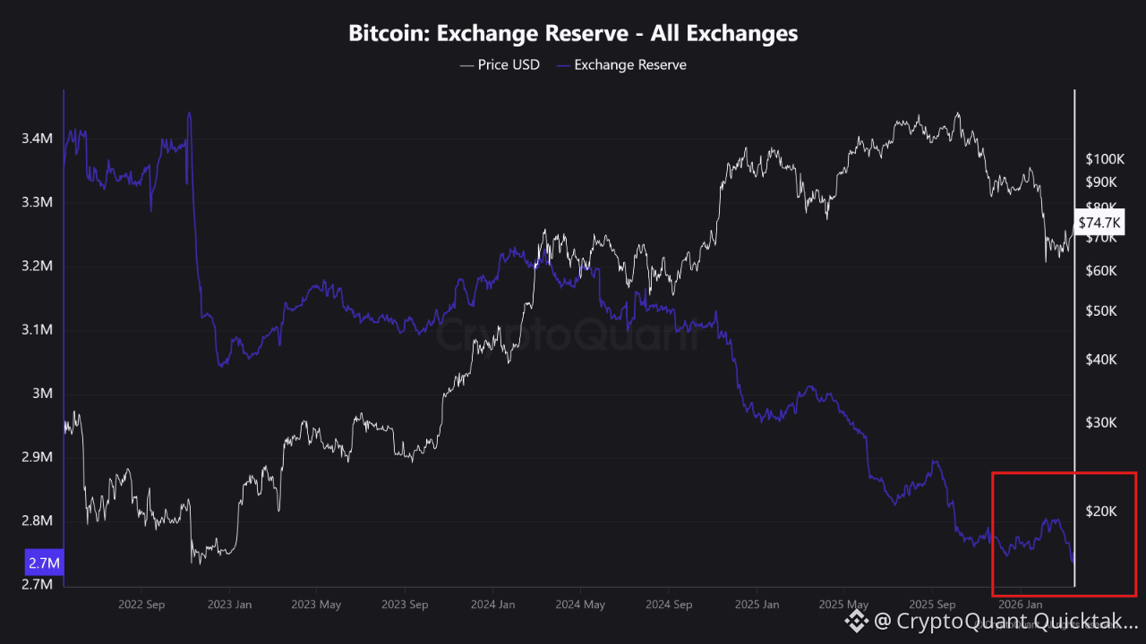 This shows the total Bitcoin reserves on centralized exchanges worldwide.