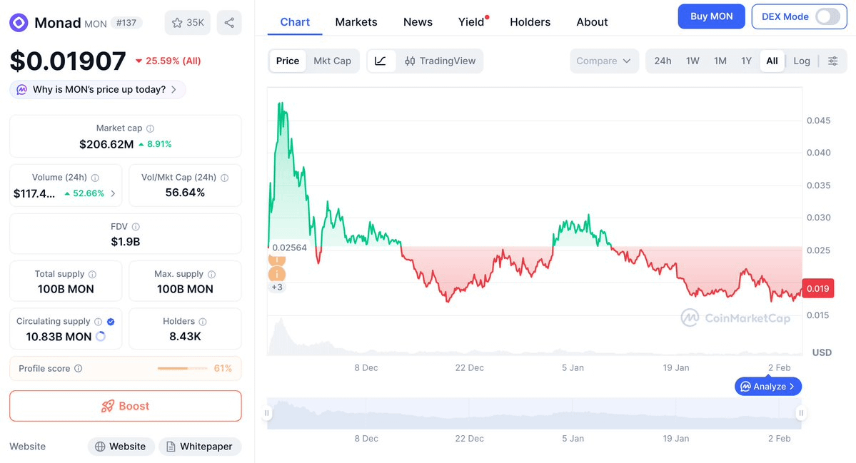 Monad mainnet has been live since late November. The praying phase is already over, but the data is even stronger than many people think. Let's talk about the current state.