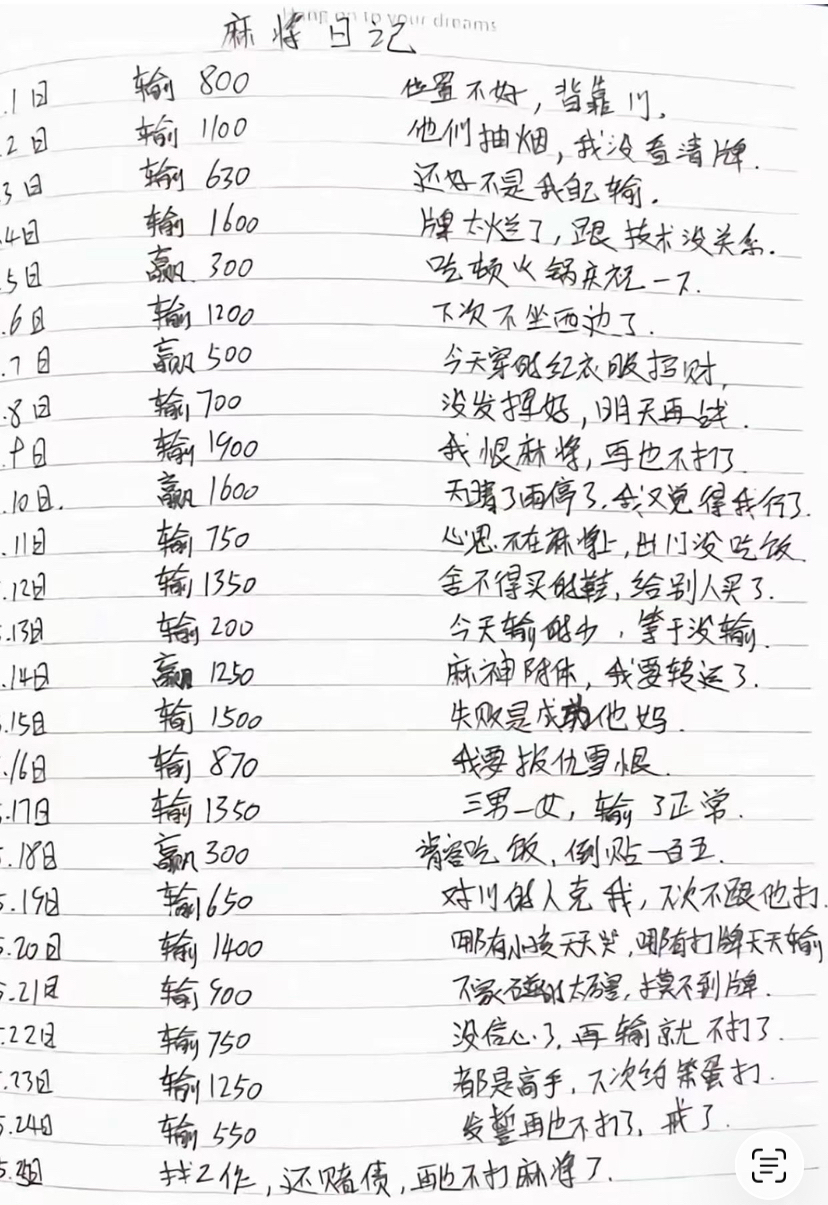 Tôi đã xem một nhật ký chơi bài rất buồn cười, người này trong một tháng đã chơi bài 25 ngày, thua 20 ngày. Mỗi lần thua, anh ta đều có thể tìm một lý do: