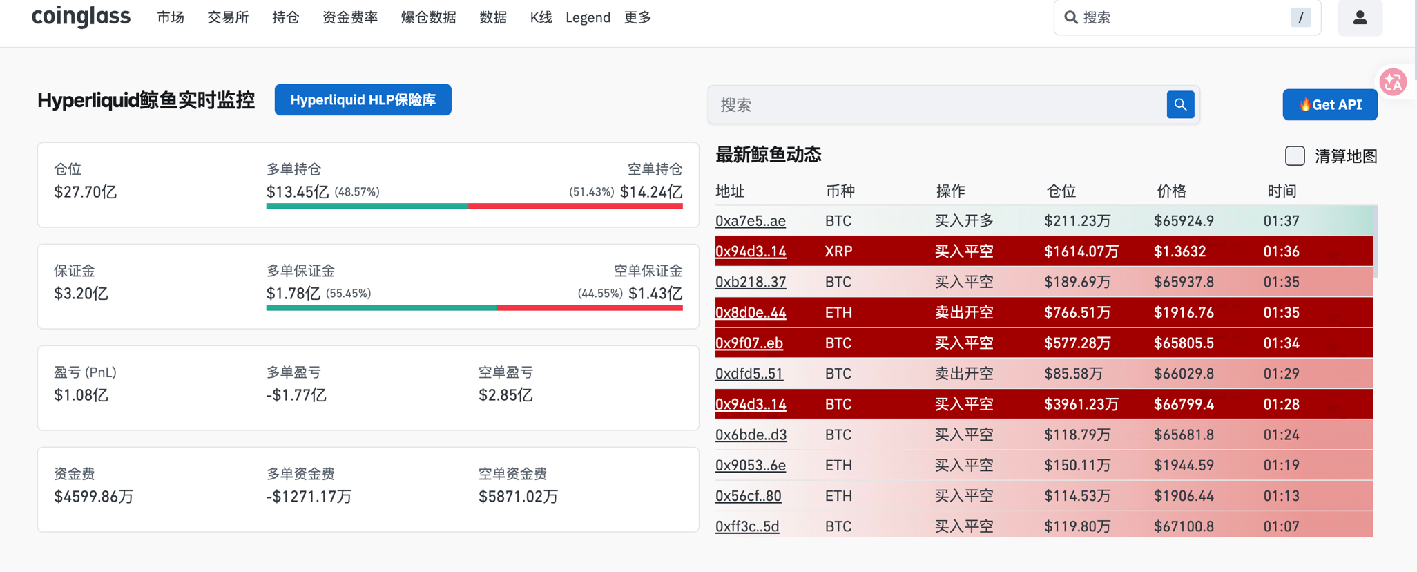 Hyperliquid 鲸鱼实时仓单: