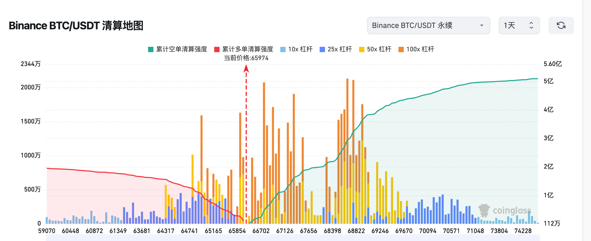 Coinglass 最新清算分布显示: